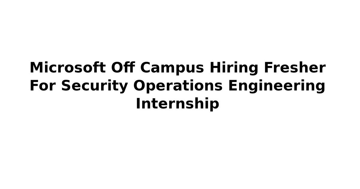 Microsoft Off Campus Hiring Fresher For Security Operations Engineering Internship drive is scheduled for freshers across India. So if you are interested for the same kindly apply as soon as possible.